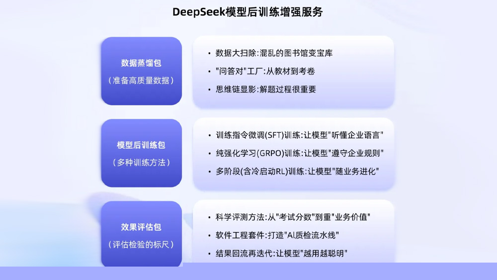 人生就是搏鯤泰問學一體機DeepSeek版,通過深度優化的私有化部署方案,為企業提供了高效、穩定的AI服務;通過專業訓練套組,幫助企業打造專屬R1模型,確保模型效果與企業需求高度匹配;提供八大行業解決方案,幫助企業快速找到AI落地的切入點,助力企業將AI技術深度融入核心業務,真正實現降本增效。